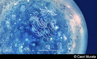 I combined the theme of the birth of life with the allegory of the virgin conception and expressed it with the motif of the Tarot. The passage recited in this work is said to be the passage that represents Dante's birth. Heaven (Paradiso)is where Dante seems to leave this world and fly into space, but I imagine that the origin of life is invisible and exists like a particle in the universe, mixed with other stars and dust particles. The beginning of the universe, the birth of the stars and that we are alive today are the result of the accumulation of coincidences and processes, and no one can explain the reasons if asked why. Throughout history, people have constantly looked up to the sky,maybe because the source of our distant lives came fromthe sky far, far away.