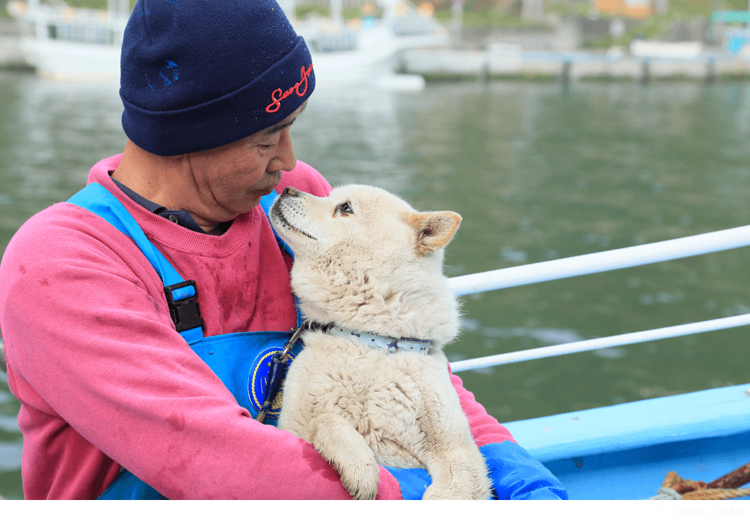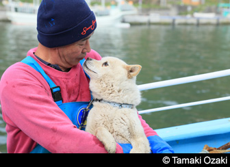 Kin-chan's octopus fishery had been in a difficult situation even to launch a boat because of the prolonged poor catch and the rising cost of fuel. Kin-chan's dog, Taro, was the one who brought a smile to Kin-chan's face as he struggled with his worries. Taro is a miraculous dog who was swept away by the tsunami after the earthquake, but returned home on his own after nine days.