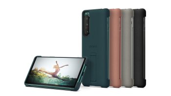 動画視聴時に便利な開閉式のスタンド機能を備える『Xperia 5 III』の専用カバーです。スタンドを閉じればカバーと一体化するスリムな構造で、持ちやすさと機能性を兼ね備えながらスマートフォン本体の形状やカラーにぴったりフィットする純正カバーならではのデザインです。さらに、カバー表面に抗菌加工を施し、ブドウ球菌など、特定の細菌の増殖を最大99.9%抑制※34します。カラーはブラック、グレー、グリーン、ピンクの4色※2を展開します。