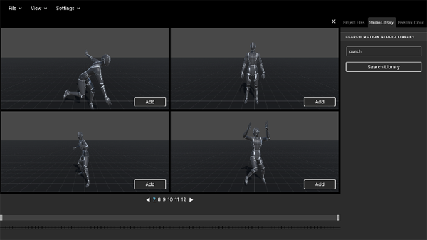 また独自のアルゴリズムをモーションデータの編集に応用することで、異なるモーションデータの間を自然な補間データを生成してつなぐ自動補間機能(トゥイーニング)を備え、クラウド上にアップロードしたモーションデータを自動解析しタグ付けを行うことで、テキストによる検索を可能にします。これらの特長により、従来費用面や設備面でハードルが高かったモーションキャプチャーを、映像制作などさまざまな分野で、幅広い層のクリエイターに扱いやすい形で提供します。