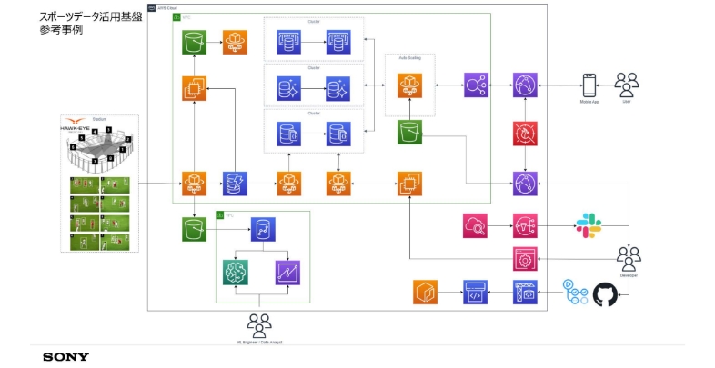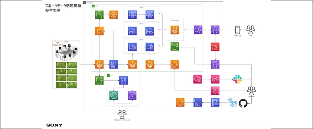 そうした取り組みを支えるのが、ソニーが2011年に買収したホーク・アイ・イノベーションズの画像認識技術です。これは多視点の4K映像をリアルタイムにキャプチャーし、AIを用いた分析で瞬時にデータ化、3DCG化する技術で、審判判定補助のほか、試合の中継映像の配信などに活用されています。ソニーは元々、放送関連の技術の知見を持っていたのですが、そこにホークアイ独自の画像認識技術を掛け合わせることでより大きな強みにしていけると考えました。その可能性をさらに広げていくための要素として期待をされているのが、ソニーのAI技術とクラウド技術です。
