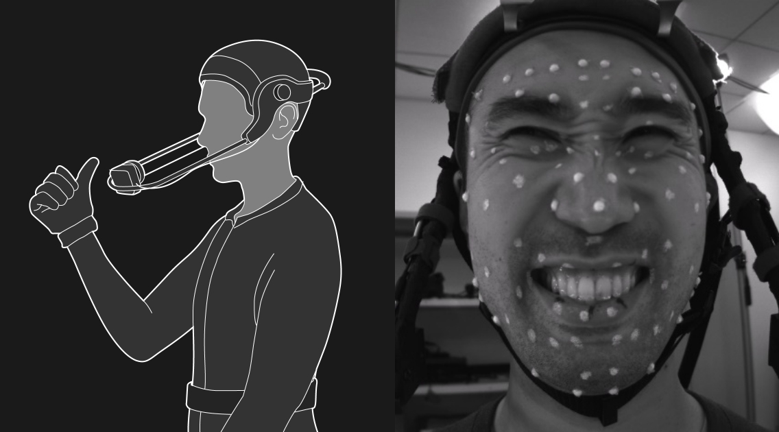 今年からはHMC(Head Mounted Camera)の導入に取り組んでいます。従来の複数台のカメラで撮影する際には、カメラの位置が固定されていたため、Facial Motion Captureの際は首や体を動かすことができませんでした。そのため、表情と体の動きを別々に撮影する必要があり、アクターが自然な演技をする上での負担となっていましたが、HMCを用いることで体を動かしても常にアクターの表情を撮影でき、体と表情を同時に撮影できるようになります。最終的に目指すDigital Humanは、全身が違和感なく動いてこそ完成します。HMCは、自然な動きのデータを得る上で欠かせないツールとなっています。