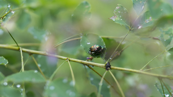 作品はどれも、身近にある小さな世界をぎりぎりまで近づいて撮影しています。やわらかなボケの中に、小さくて可愛らしい昆虫が写っています。この虫たちの可愛らしい表情を見た時に「なぜいままで、気付かなかったのだろう?」という疑問が湧いてきたと、その時を振り返る清水氏。「昆虫がメインの被写体ではないんです。昆虫は、私が伝えたいことの象徴のようなものです。“自分が見ている視点を疑ってみると、普段は気づいていない世界が見えてくるよ。それは単なる視覚という意味だけではなくて、価値観や人生観にも共通することだよ”と気づかせてくれたのが昆虫たちでした。」