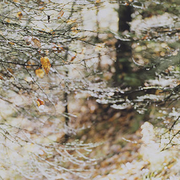 今回の写真展の作品群が、なぜ山小屋の窓から見える風景なのか。それは長く滞在していたアラスカや山岳遠征での体験のなかで、山田の記憶に深く印象に残っているもののひとつが山小屋の窓から見える景色だったからだ。山小屋の窓の外には特別な絶景というものはなく、ただ木々の枝が触れ合いながら揺れ、葉が重なり、光が漏れている。季節によってはホワイトアウトの吹雪や霧のこともある。それぞれの山小屋の窓の風景体験こそが、その空間や時間の記憶につながり、それらの記憶をたどり、記憶から景色を描写したいという思いに至った。それが、今回の作品シリーズ “CABIN” なのである。「自然の中に建てられた山小屋というミニマルな居住空間で味わえる独特の静寂さやポジティブな孤独感、四季の自然の移り変わりなどを含めて、具体的なものを主張せずにぼんやりとそして確かに私たちに届く景色の存在感や気配感を描写したいと思いました。」と山田は話す。