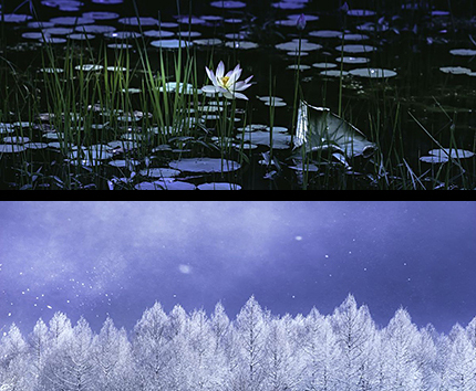 日本は豊かな自然に恵まれ四季折々の美しい風景を楽しむことができます。そうした環境もあり古来から草花や樹枝を器に生けて楽しむ文化がありました。それは室町時代に入って形づくられ徐々に伝統芸術である華道へと昇華されていったのです。自然の中にある“美しさ”を花に託し“生ける”ことで“美”を表現することと、美しい自然風景を写真という“器(花器)”に写し込むことは、芸術としての表現において通じるものがあるように感じていました。また、同様に“和”の美しさや奥深さを表現した掛け軸(日本画)などとも通じるものがあることから、それらを意識しつつ作品を撮り続けてきました。
