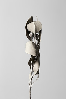 長谷氏が作品としてドライフラワーに取り組むようになったきっかけは、その複雑で美しいフォルムに魅了され、写真で表現したいと思ったからだ。その後、各地のフラワーショップやドライフラワー専門店などを訪ね歩き被写体を探し求めた。「ドライフラワーは、ただ枯れただけの花とは違います。それは美しく枯れさせるための管理のもと、自然がつくった花や植物のフォルムや色を魅力的に表現したアートであり、被写体として非常に惹かれるものがあります。」と長谷氏。