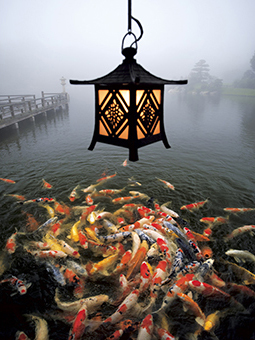 錦鯉は、新潟県山古志地方が発祥とされている。江戸時代中期、この山里で暮らす人々は、冬の間の貴重なタンパク源として真鯉を飼うようになった。その真鯉から突然変異で色つきの稚魚が誕生し、いつしか人々は、より美しくユニークな模様の鯉の創出に情熱を燃やしはじめたのだ。やがて日本が高度経済成長期に突入すると、自宅の庭の池で錦鯉を飼うことがブームとなり、錦鯉は急速に全国へと広がっていった。そして今、海外で「NISHIKIGOI」の愛好家が激増している。私は新潟や広島の養鯉場を訪れ、色鮮やかな錦鯉が生み出されていく過程を丹念に取材した。同時に、街中の水路や日本庭園にもカメラを向け、カラフルな錦鯉が優雅に泳ぐ姿を日本の風景として作品に置き換えていった。