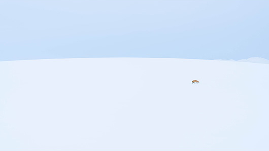 井上氏はキタキツネを撮っているのではなく、冬のキタキツネがいるからこそより魅力的になった風景を撮影しているのだ。