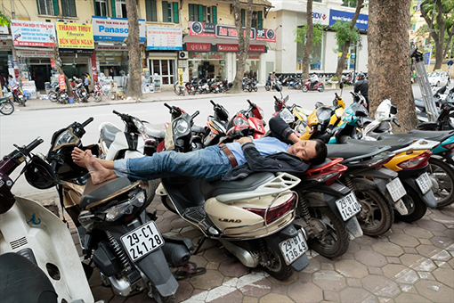どの街に行っても昼寝をしている姿をよくみかけます。
