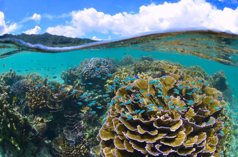 街から少し離れると沖縄で一番高い於茂登岳から連なる山々があり、自然が溢れ、澄み切った青空にはカンムリワシが舞い美しい珊瑚礁の海ではマンタが優雅に泳ぐ。南国らしい日中のビーチの美しさはもちろんだが、凪いだ朝焼けや海に空が映り込む夕景のマジックアワーの後には、夜空に水平線から天の川が現れ、満点の星空が輝き森の中に入ればヤエヤマヒメホタルが乱舞し、夏の夜にはサガリバナが咲きはじめる。今まで沖縄のたくさんの離島を撮影してきたが、1つの島で、これだけ魅力あふれる島は他にはないと思う。このコロナ禍で島外に行くことができない中、あらためて石垣島の魅力を実感した。そして、コロナ禍のこの2年間でもう一度、島を見つめ直しながら撮影してきた作品と、今まで撮り溜めてきた写真を通して石垣島の魅力をお伝えできればと思う。