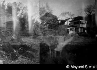 鈴木麻弓は、今年度より写真学科に教員として戻りました。すでに国内外で数多くの写真展を開催し高く評価されております。ダミーブック制作でも高名です。今回は、亡き両親への思いを込めた作品です。ブローニーフィルムに多重露光した作品を8本のロール紙に焼き付け、それを並べる方法で壁1面に1つの作品を浮かび上がらせます。インスタレーション的な展示方法で、和紙が展示期間中にどのような変化を来すかも見どころです。
