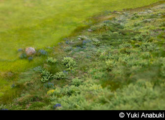 穴吹有希は、昨年に続き4度目の登場です。新しい技術や技法を積極的に取り込み、多様な制作方法に挑戦し、独自の写真表現世界を創りあげています。今回は2004年から継続しているライフワークの一つで、「SKY Ⅱ」で展示した作品の後継となります。全ての作品は地に足をつけアイレベルから撮影しています。現実にある風景でありながら、地上から離れ天上から俯瞰した視覚を彷彿とさせられます。それは現実を超えた穴吹の記憶の世界なのです。
