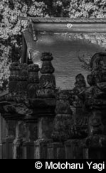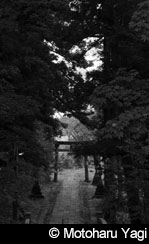 八木元春は、卒業後5年間、建築写真の業界で技術を磨いたのち、昨年度より教員として戻りました。現在、一番の若手ですが、写真は熟練しています。被写体は、新潟県長岡市の蒼紫神社であり、その土地の記憶を作品にこめています。建築物の特徴を明確に捉えるという建築写真家の視点を随所に感じられ、通常の神社を紹介する作品とは異なる部分がポイントです。白黒写真のトーンの美しさも追求し、階調豊富でありながらも自己のイメージを優先させています。