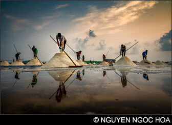 ベトナム中南部の沿岸地域に位置するスアンビン村のトゥエットジエム(フーイェン省ツンカウ市)は、伝続的な塩づくりの技法が残されている数少ない村のひとつです。ここでは、人々が塩辛い塩の粒を精製し、海の香りが漂う純粋な調味料へと仕上げています。