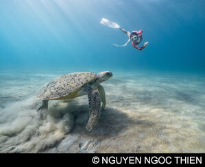 バーリア=ブンタウ省に位置するコンダオ島は、青い海、白い砂浜といった素朴な自然の美しさを有しているだけでなく、ベトナムで最も多様な海洋生態系を維持しているため、ダイビングを愛する人々にも高い人気を誇っています。特にこの地域は、多くのウミガメの保全と救助活動が行われ、その努力が成功を収めている場所でもあります。