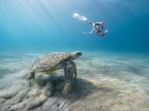 コンダオ国立公園の水域は、主にアオウミガメ(または鼈甲カメとも呼ばれる)の生息地として知られています。