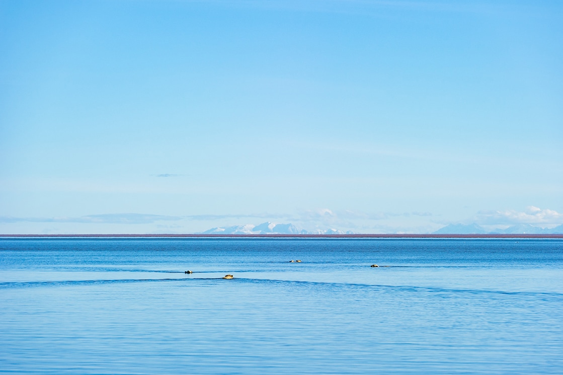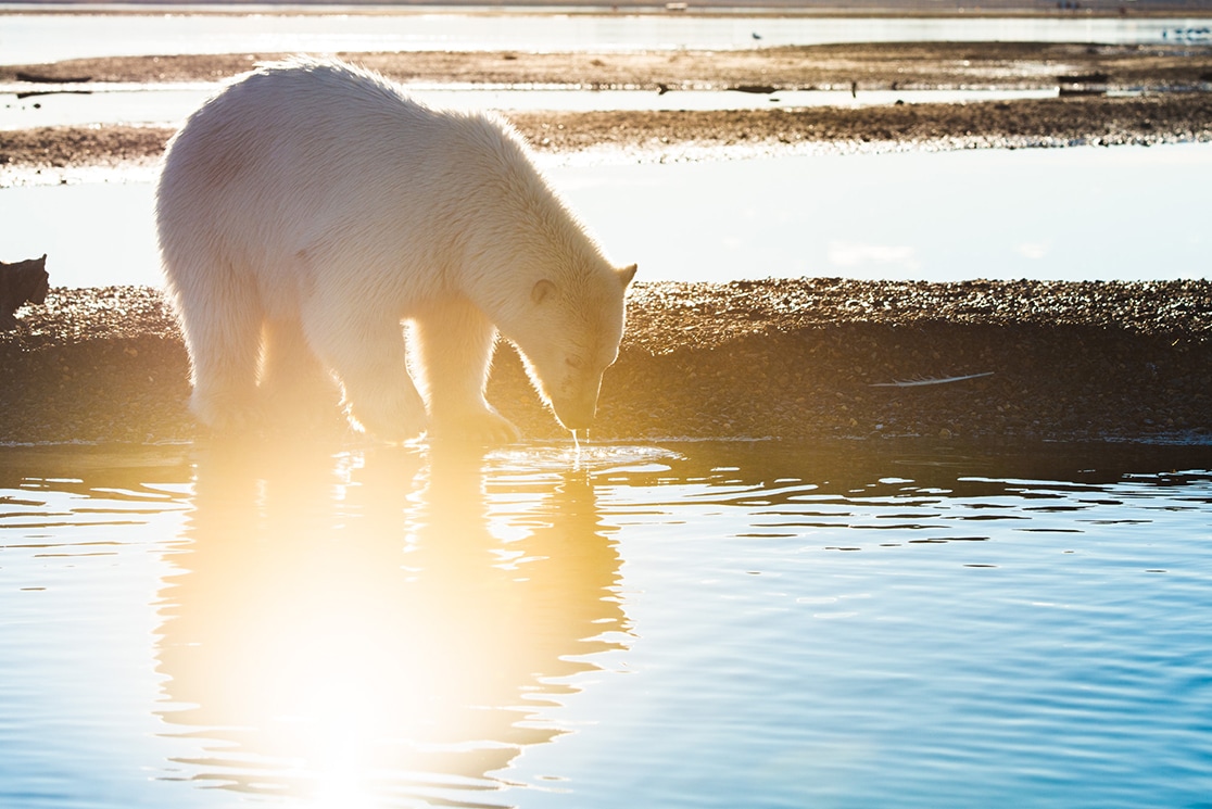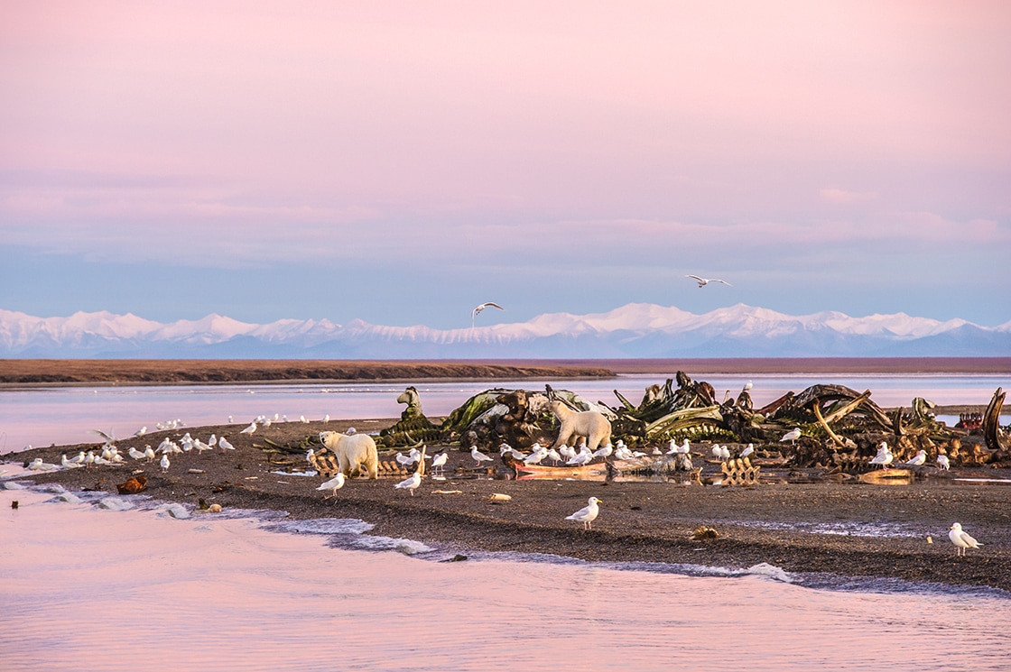 ピンクの空に包まれてホッキョクグマが鯨の残骸に群がる姿は、この世のものとは思えず息をのんだ。