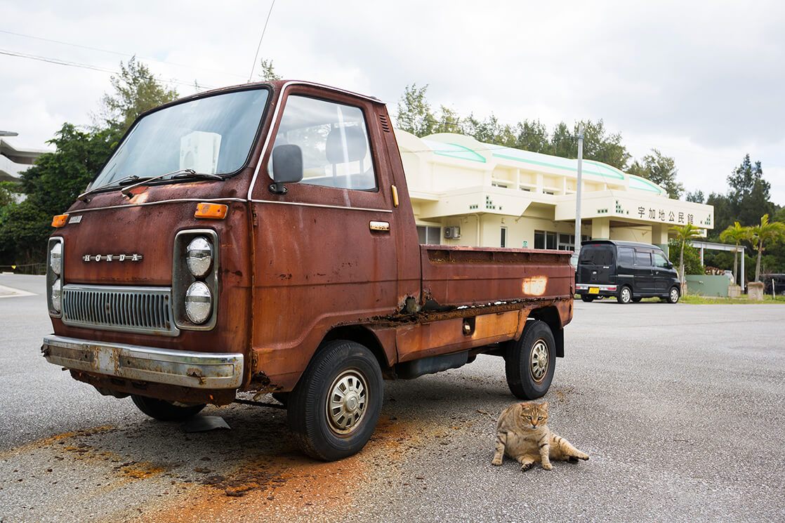 ノスタルジーや哀愁といった言葉だけでは言い表せないこの朽ちた車達の魅力を、沖縄の海や風などの自然と共に感じ取っていただけたら幸いです。