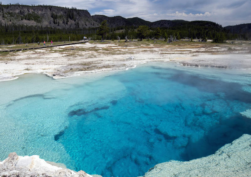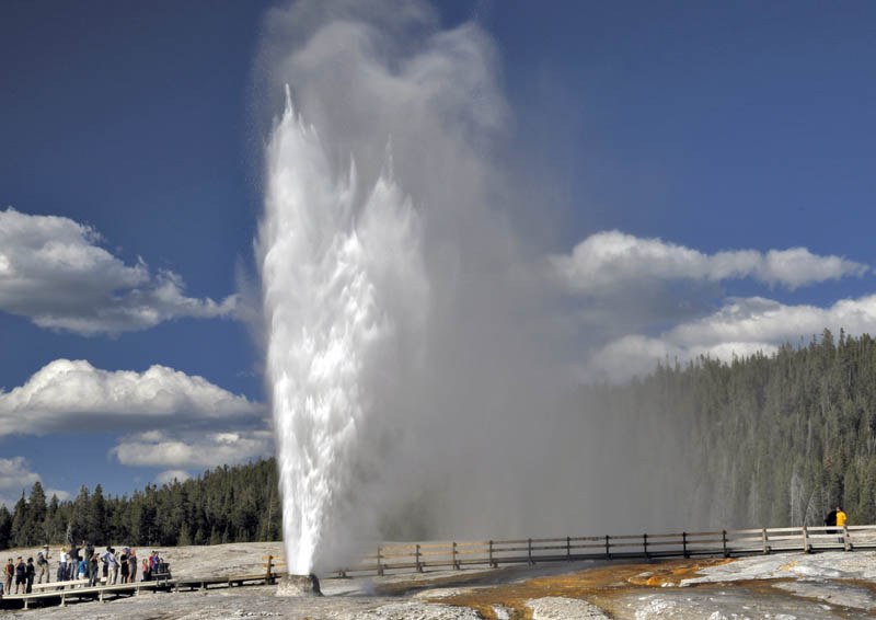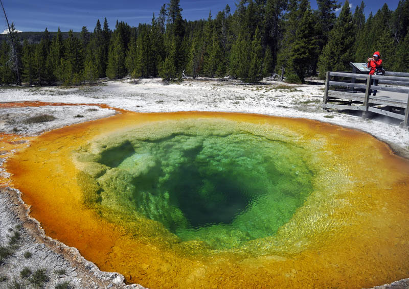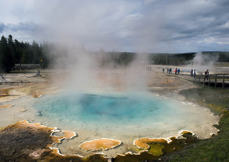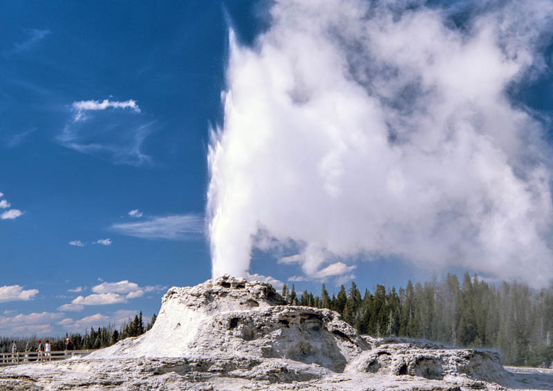 イエローストーン国立公園は、1872年に世界で最初に国立公園に指定され、2022年には150周年となりました。また、1978年には、世界遺産に登録されています。ロッキー山脈の盆地にある大地熱地帯で、地下にホットスポットと呼ばれるマグマの供給源があり、火山活動が活発な地域です。イエローストーン国立公園では、火山地形と間欠泉に代表される熱水活動が多くの観光客の興味を集めています。また、狼に代表される野生動物の観察にも人気があります。