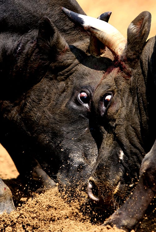 人と牛が一心一体となって戦う姿は、生死をかけた戦いのように神秘的にさえ見える。