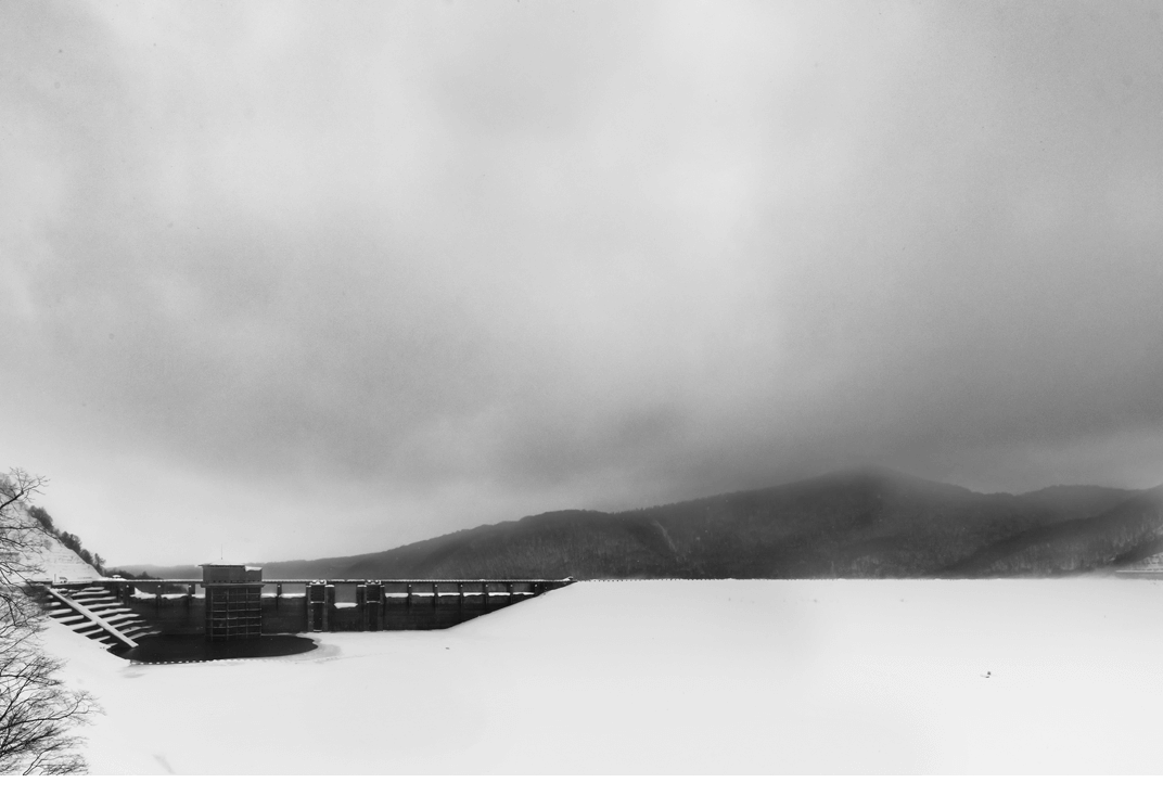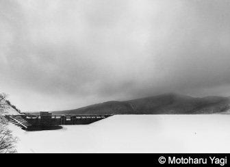 八木元春は、昨年に続き2回目の登場です。建築写真の業界で技術を磨いたのち教育に携わりました。人物から風景まで幅広い分野に対応する技術をもちながら、ライフワークとして建造物関係の作品を制作しております。今回はダムを被写体として環境、自然との関係を考察した作品となっています。雪の中のダムの姿を、白黒写真でトーンの美しさを追求しながらも自己のイメージを優先させた独自の世界観を表現しています。