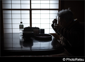 ここ2年ほど盲目のイタコ「中村タケ」さんの写真を撮っている。イタコの仕事は祈祷、占い、祓いなど多岐にわたるが大半の方は「口寄せ」を求めて訪れる。亡くなった人の魂をイタコ自身に憑依させ、死者と生者が交流を仲介する「口寄せ」。「胸のつかえが下りた、懐かしい、心が温かくなった」、「口寄せ」で故人と交流した人達が心軽く、笑顔で帰っていく様を撮影中に何度も目の当たりにした。